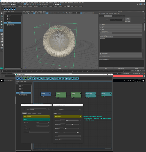 Este atributo criado pode então ser usado em qualquer node seguinte, em qualquer campo. Pode ser usado para controlar o valor de bend dos fios ou a sua espessura, por exemplo.