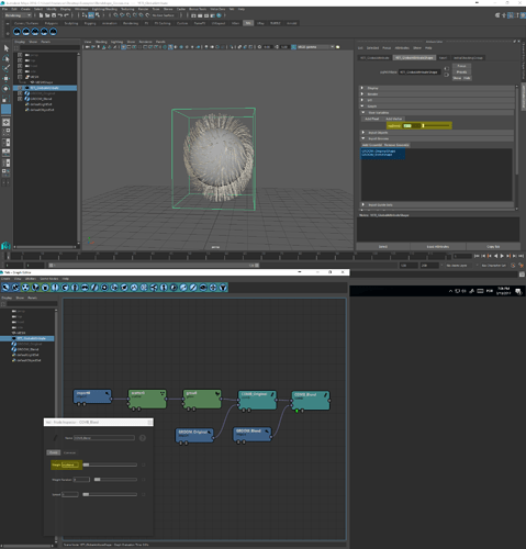 - Adicionar um novo node de Comb com o Groom do Blend e atribuir a variável global criada como peso.