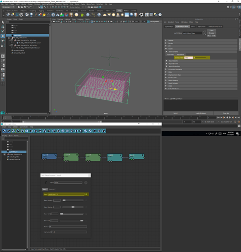 Neste exemplo, um valor passado pela Custom Global Variable chamado de “myAtt” é chamado dentro de um node interno da tree para controlar um parâmetro de bend. Este atributo pode ser usado em qualquer campo de qualquer node do Yeti.