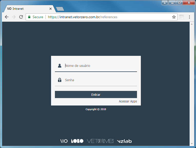 Logar-se com o seu usuário da Intranet e senha. Por exemplo, se o seu logon for nome.sobrenome@vetorzero.com.br, preencha o campo usuário somente com nome.sobrenome e sua senha de Intranet.