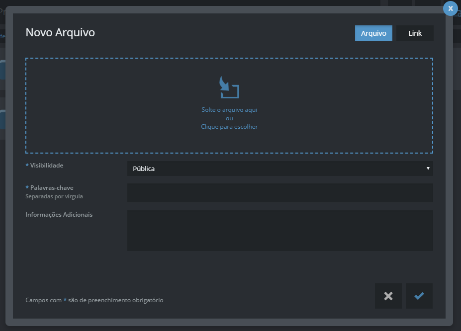 - Visibilidade: campo obrigatório. Pública permite que outros possam visualizar o novo arquivo;