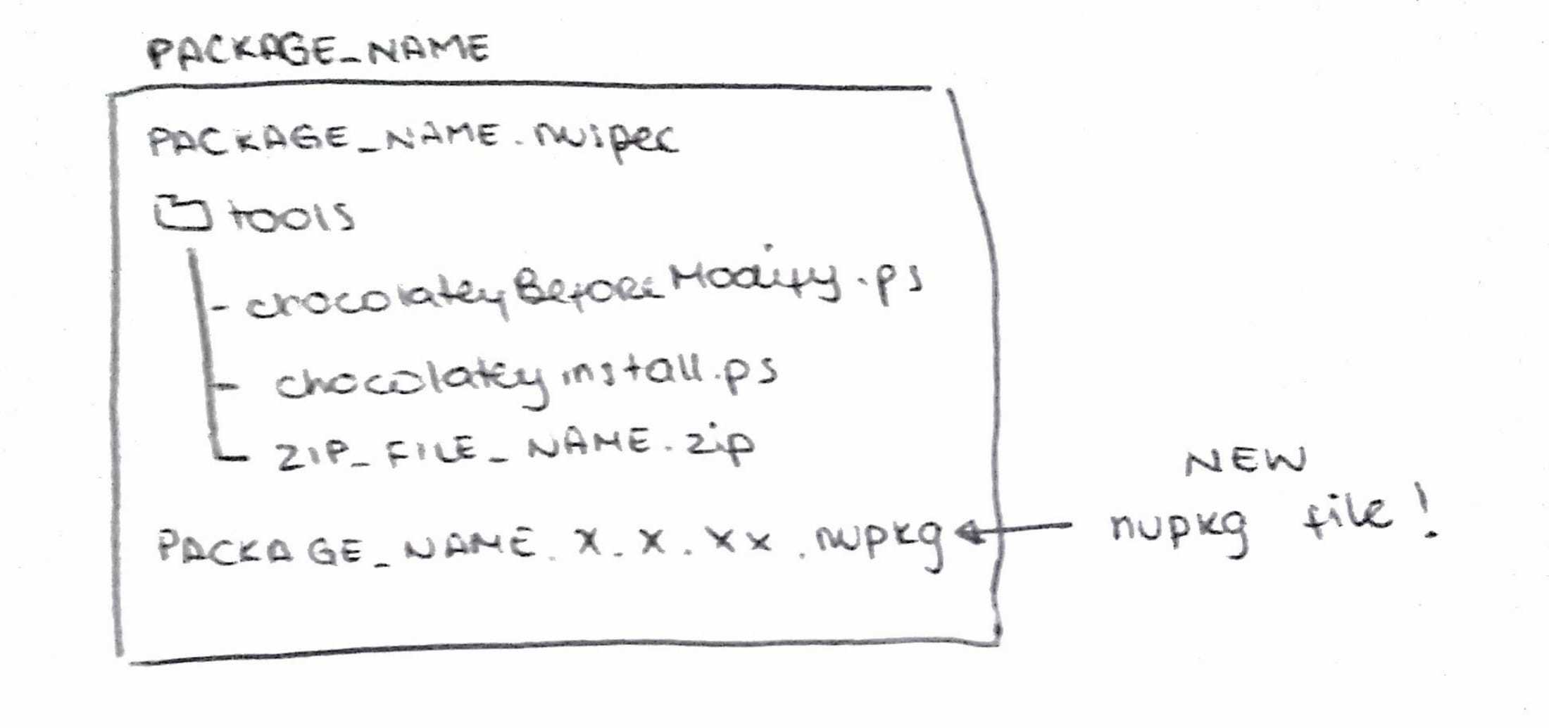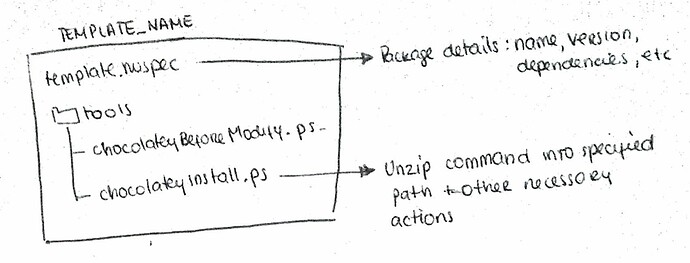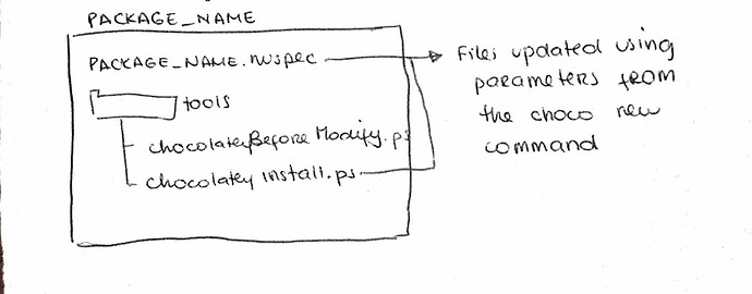 choco new -t TEMPLATE_NAME --name=PACKAGE_NAME --version=X.X.XX Dependency=OTHER_PACKAGE_NAME ComponentExtractDir=PATH ZipName=ZIP_FILE_NAME