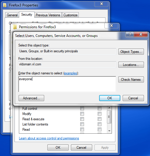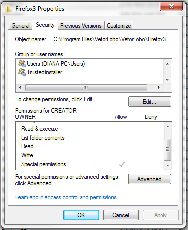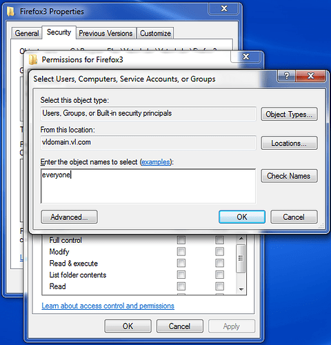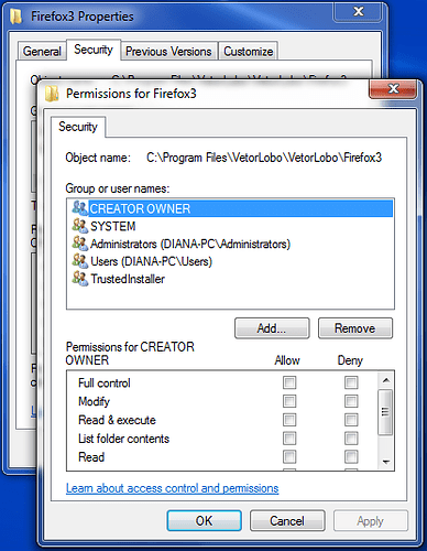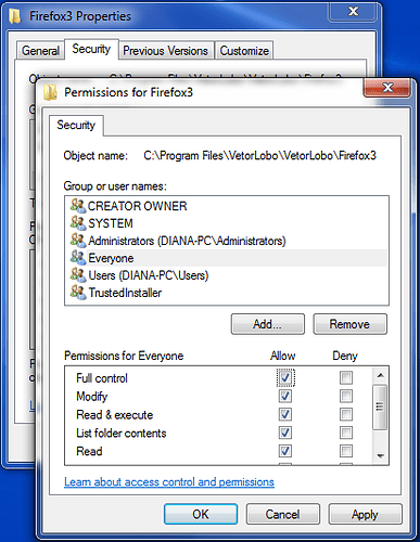 - Clicar em Ok de novo, para fechar as propriedades da pasta Firefox3