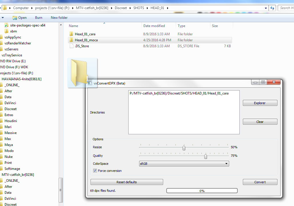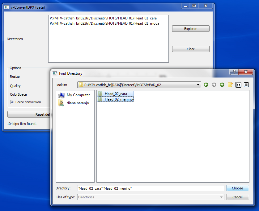 Let’s say we have a directory that contains .dpx files: P:\MTV-catfish_br[0236]\Discreet\SHOTS. As previously stated, the files must be contained within a DPX directory as shown below: