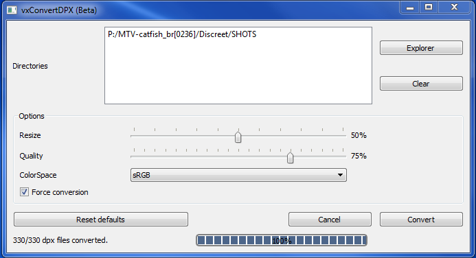 - The resulting files will be inside a JPEG directory at the same level as the original DPX directory.
