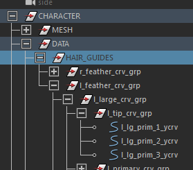 As guides devem estar no grupo DATA num grupo chamado HAIR_GUIDES, podendo ter sub-grupos para melhor organização das curvas, como no exemplo abaixo: