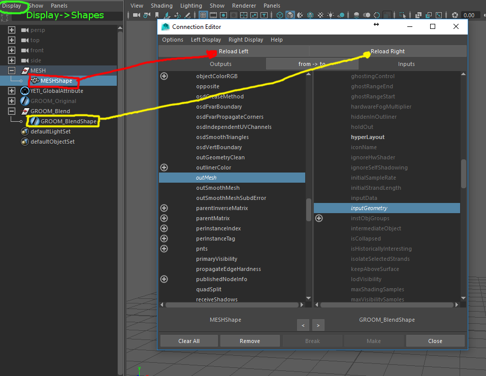 - Selecione o shape do Groom do Blend e clicar em Reload Right