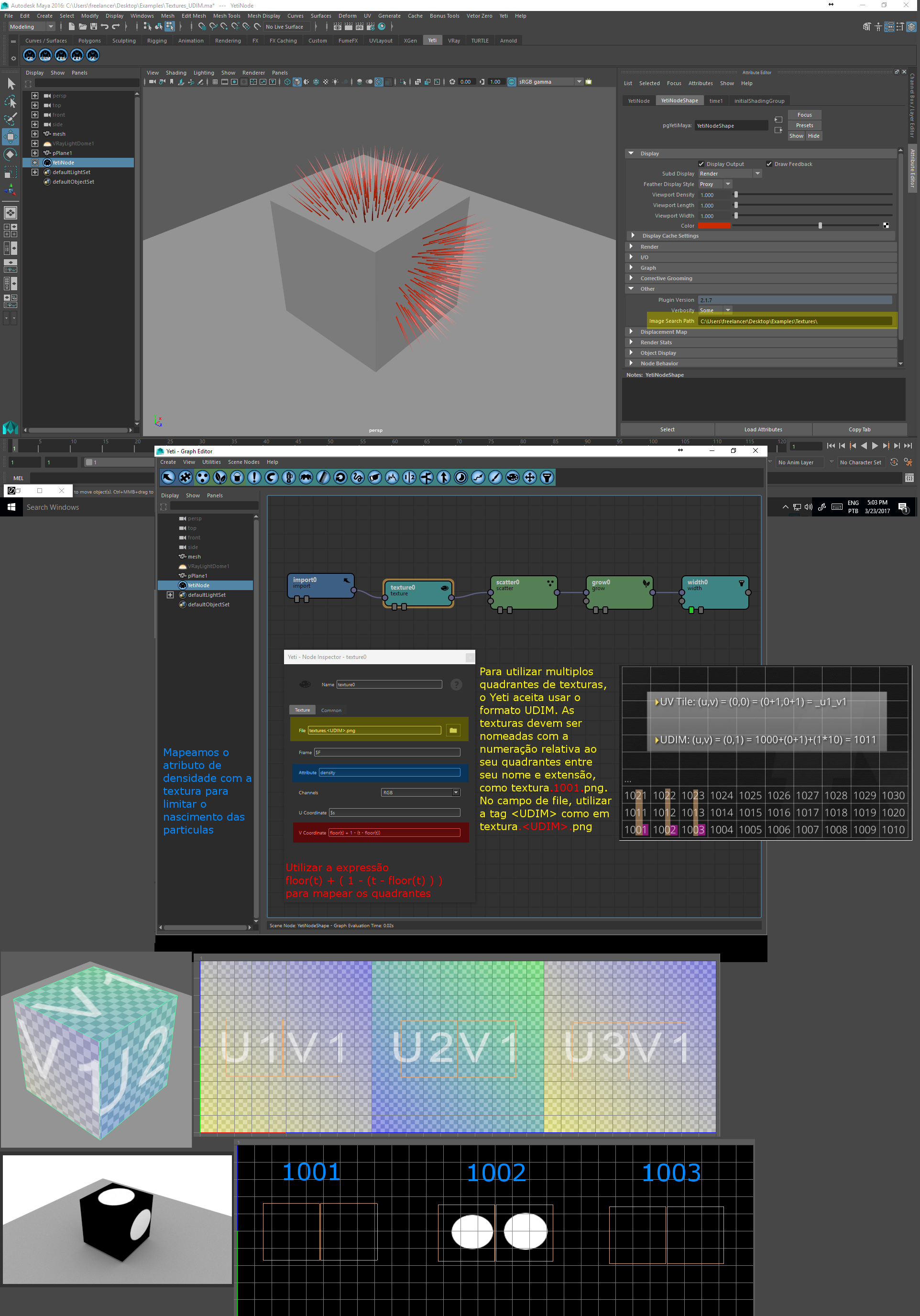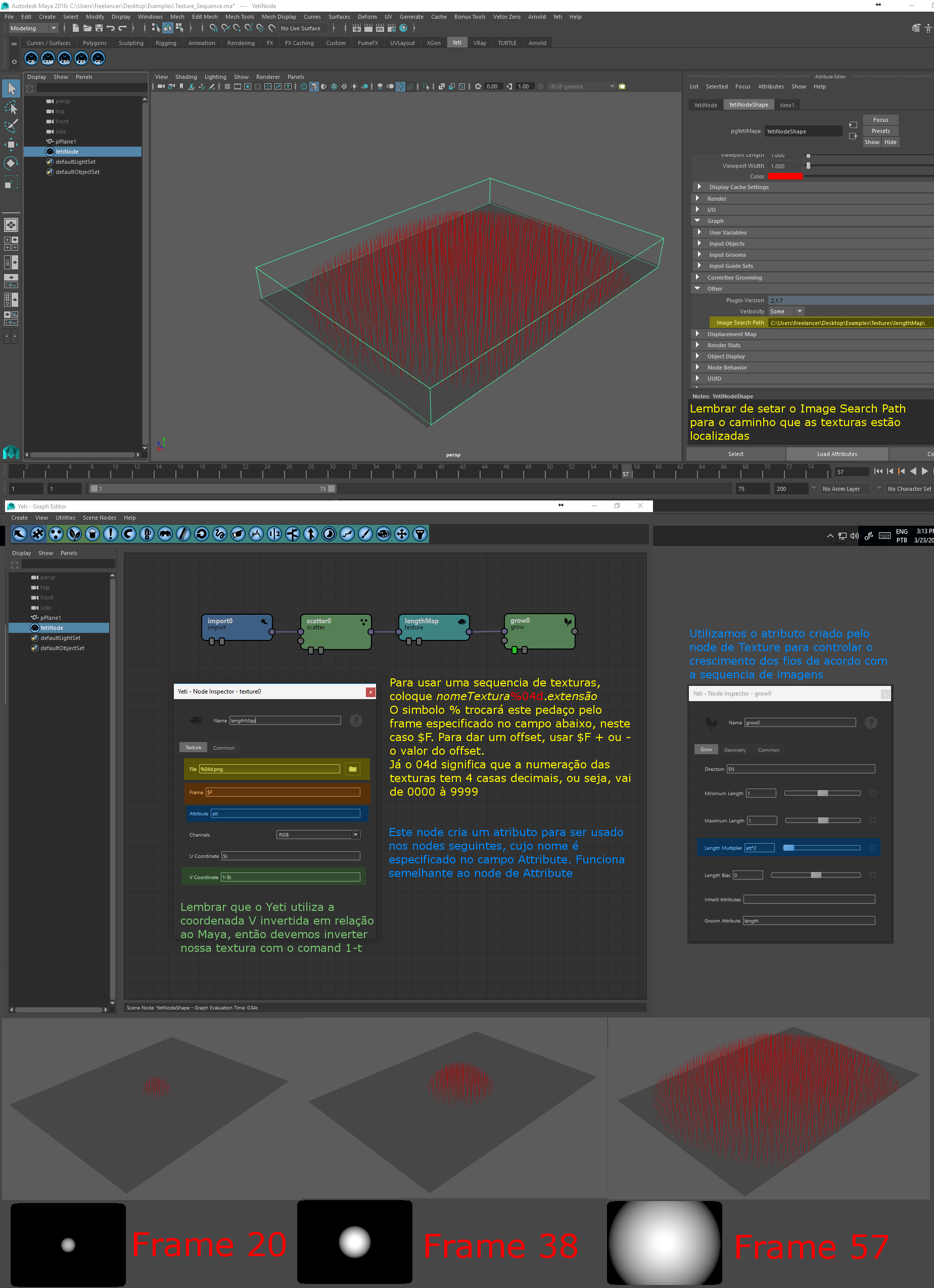 Lembrar sempre de setar o caminho do Image Search Path no node superior do Yeti. Pode ocorrer um problema na qual o Yeti não reconhece o caminho relativo da pasta das texturas. Neste caso, trocar o Image Search Path para o caminho absoluto.